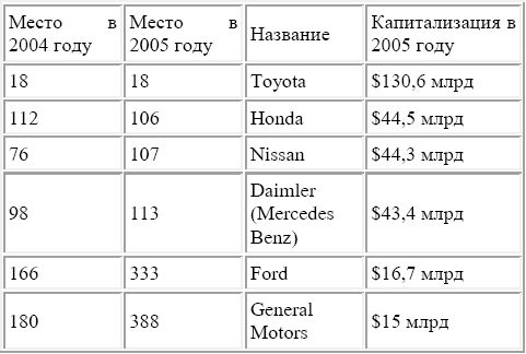 Затем в следующие годы и Ford и General Motors и вовсе выбыли из списка FT500, а в 2008 году капитализация Toyota составила $173 миллиарда, а Daimler – $87 миллиардов.