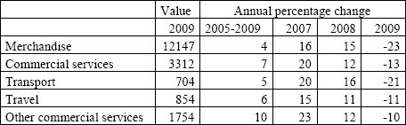 World exports of merchandise and commercial services, 2005-2009