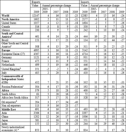 World merchandise trade by region and selected country, 2009