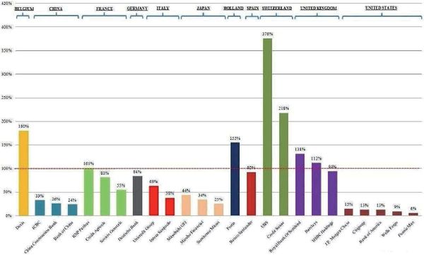 Ввиду масштабности деятельности и аппарата структуры имеется возможность финансового лавирования в плане результатов деятельности отдельных элементов структуры, что можно определит как внутрикорпоративное манипулирование в целях создания внешней иллюзии для внешнего мира. Следом в рейтинге идет английский Royal Bank of Scotland и HSBC Holding.