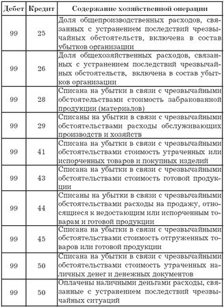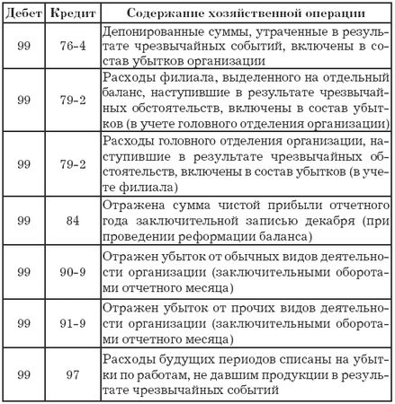 Проводки по дебету счета 99 "Прибыли и убытки"