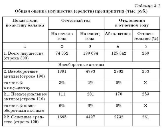 Анализ динамики состава и структуры имущества дает возможность установить размер абсолютного и относительного прироста или уменьшения всего имущества предприятия и отдельных его видов.