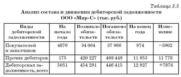 Данные для анализа состава и движения дебиторской задолженности можно систематизировать в табл. 3.5.