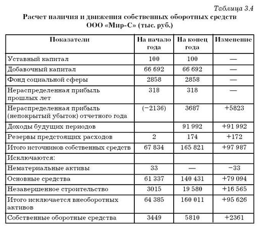 Весьма важно анализировать величину и динамику собственного оборотного капитала, которая определяется как разница между собственным капиталом и внеоборотными активами.