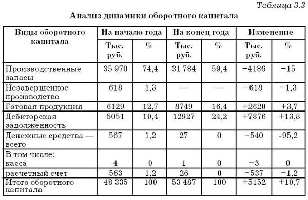 Из данных табл. 3.3 видно, что оборотный капитал за год возрос на 5152 тыс. руб. – с 48 335 до 53 487 тыс. руб., или на 10,7 %. При этом наибольший рост произошел за счет увеличения дебиторской задолженности на 7876 тыс. руб. – с 5051 до 12 927 тыс. руб., или на 155,9 %.