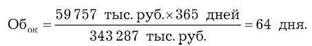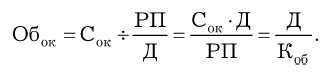 Продолжительность одного оборота (оборачиваемость оборотного капитала) в днях Обок определяется делением оборотного капитала Сок на однодневный оборот, определяемый как отношение объема продаж РП к длительности периода в днях Д или же как отношение длительности периода к количеству оборотов Коб: