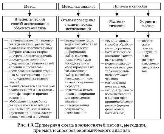 Метод исследования тесно связан с методикой, через которую он и реализуется. Методика как совокупность правил, приемов и способов для целесообразного выполнения какой-либо работы всегда конкретна. Она зависит от цели, задач, объектов исследования, от содержания программы изучения, вида экономического анализа, последовательности и сроков его проведения.