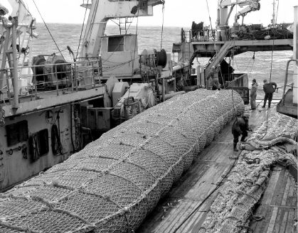 Трал с уловом трески не менее 70 тонн поднят на борт российского рыболовного траулера в Баренцевом море