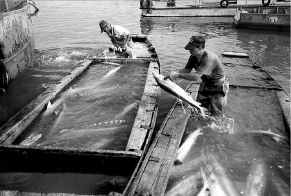Промысел их, благодаря работе 13 осетроводных заводов (8 из которых на Волге), выпускавших в отдельные годы до 85-100 млн. т. молоди, позволил в 70–80 годах XX века стабилизировать уловы на уровне 16–27 тыс. т, а производство икры – около 3 тыс. т, в том числе Россией соответственно 10–16 тыс. т и более 2 тыс. т.