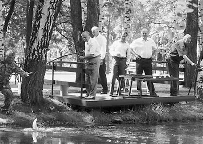 Главные политические "рыбаки" России на совместной рыбалке в резиденции Д. Медведева (фото из газеты "Известия")