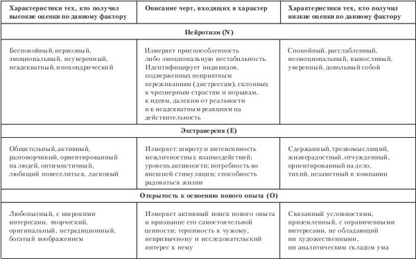 Факторы черт личности, образующие Большую пятерку (O-C-E-A-N)