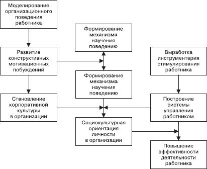 Построение системы управления работником обеспечивает формирование стратегических установок, механизмов и процедур, обусловливающих как достижение оперативных целей, так становление и закрепление свода тактических и стратегических мотивов ОП. Организация формируется для осуществления совместного и взвешенного управления каждым сотрудником в той мере, в какой его поведение может вступить в противоречие с поведением других. Вот почему управление работником в организации не только уместно, но и абсолютно неизбежно. Все дело в том, каким образом оно осуществляется, как минимизируется ущемление интересов и максимизируется использование мотивов каждого из участников организации.