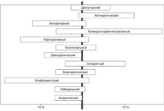Рис. 4.5.1. Соотношение стилей руководства и управления в отечественных организациях