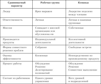 Таким образом, команду можно рассматривать как вид группы в организации, находящейся на более высокой ступени развития. Основные различия между рабочей группой и командой представлены в табл. 5.5.1.