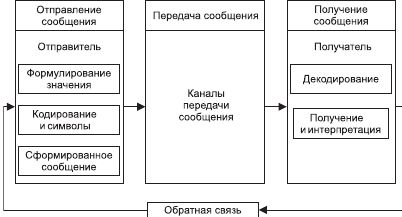 Процесс коммуникации включает ряд этапов: отправление сообщения, его передача и получение. Важнейшими элементами коммуникационного процесса выступают отправитель (коммуникатор), сообщение, каналы передачи, получатель и обратная связь (рис. 7.1.1).