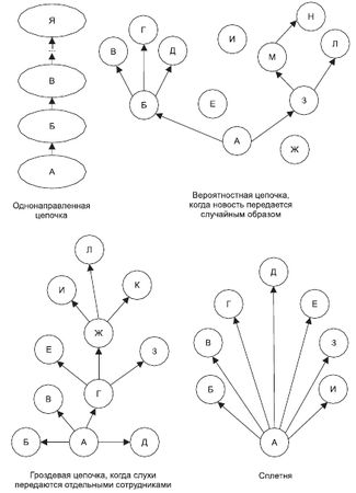 Рис. 7.2.2. Виды неформальных коммуникаций "виноградная лоза"