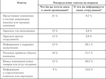 Все сотрудники хотят получать информацию о своей компании. Какую? Готовы ли менеджеры им ее давать; Какую информацию они готовы предоставить?