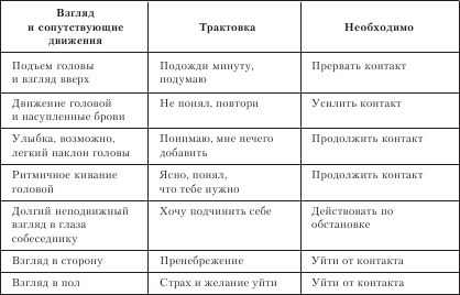 Направление взгляда показывает, на кого (или на что) направлено внимание собеседника, а также дает обратную связь, т. е. показывает, как собеседник относится к сообщению.