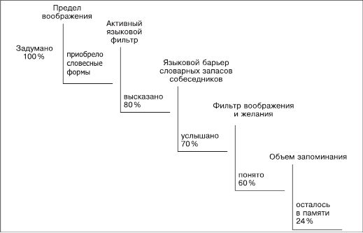 Потери при вербальном сообщении показаны на схеме, разработанной П. Мицичем (рис. 7.4.1 [5]).