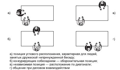 К проксемическим характеристикам общения относится не только дистанция, но и взаимное расположение людей в пространстве (рис. 7.3.1).