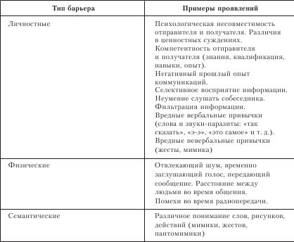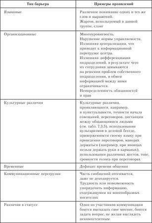 Примеры различных коммуникативных барьеров представлены в таблице 7.4.1.