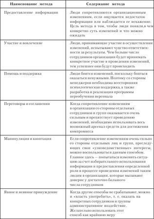 Методы преодоления сопротивления организационным изменениям