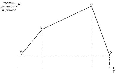 Для определения наиболее рациональных способов воздействия на человека в состоянии стрессовой ситуации необходимо иметь представление о динамике развития состояния внутреннего напряжения (рис. 9.4.2).