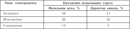 Некоторые исследования показали наличие взаимосвязи между типом темперамента руководителей, занимаемой должностью и стрессовыми состояниями этих руководителей (табл. 9.4.1).