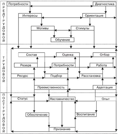 Необходимо выработать четкое представление о составе, содержании и взаимодействии основных элементов каждого из периодов жизненного цикла работника (рис. 11.2.1).