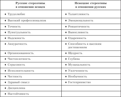 Менеджер, оказавшись за рубежом, начинает использовать известные ему стереотипы национального поведения и упрощенной оценки людей другой национальности. В табл. 13.4.2 и 13.4.3 даны примеры стереотипной оценки качеств немецкой и русской нации.