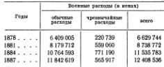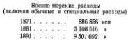 Как отмечалось выше, передача некоторых предприятий покровительствуемым финансистам дала правительству возможность сконцентрировать свое внимание на военных отраслях промышленности, которые продолжали оставаться под таким же строгим правительственным контролем, как и прежде. После подавления Сацумского восстания правительство решительно встало на путь расширения промышленности по производству вооружения. Несмотря на сокращения расходов по другим статьям государственного бюджета в этот период (1881–1887 гг.), произошло резкое увеличение военных расходов (свыше 60 %) и военно-морских расходов (200 %) за периоде 1881 по 1891 г., как показано в следующих таблицах: