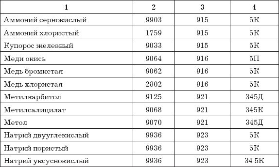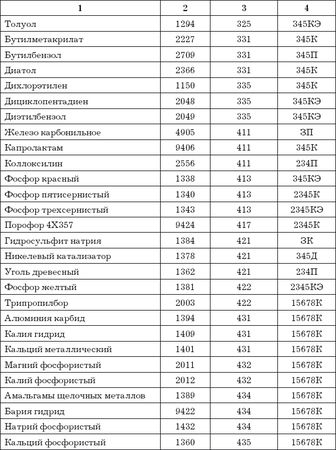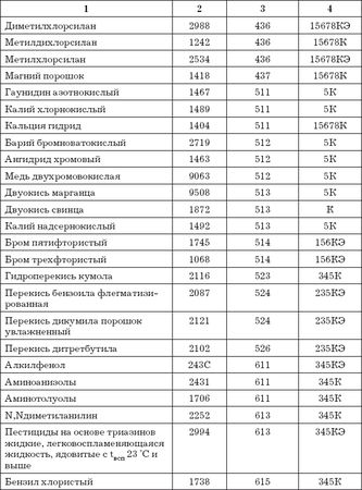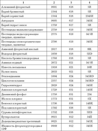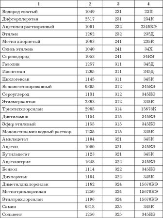Краткий список наиболее часто перевозимых и хранимых на складах веществ и материалов