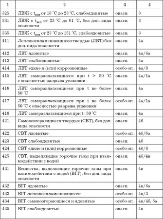 Классы и подклассы опасных и особо опасных веществ и материалов