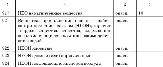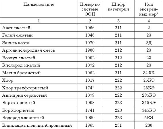 1.10. Список наиболее часто перевозимых и хранимых на складах веществ и материалов приведен в таблице 3.