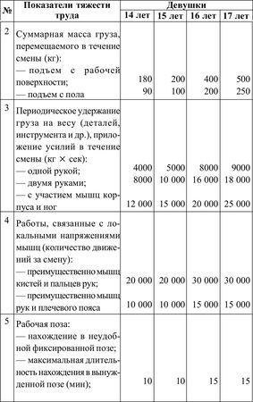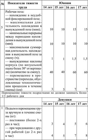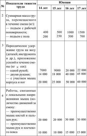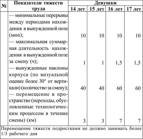 Предельно допустимые величины показателей тяжести трудового процесса подростков
