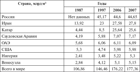 Распределение добычи и производства природного газа. Распределение мировых запасов показывает преимущество России по сравнению с большинством стран мира (табл. 5.1).