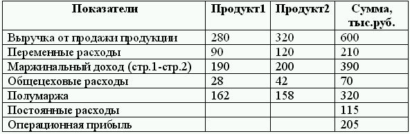 Расчет суммы прибыли, составленный методом развитого директ-костинга, позволяет более наглядно отобразить влияние маржинальной прибыли по каждому продукту на общую сумму прибыли от реализации.