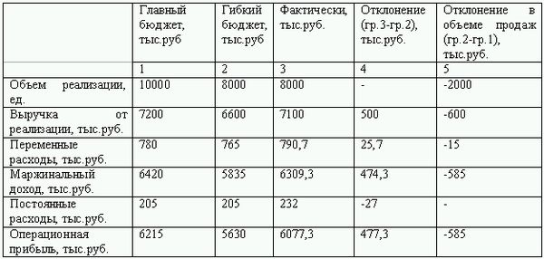 4) анализ отклонений в объеме продаж гибкого бюджета от главного бюджета.