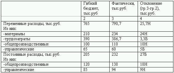 Таким образом, пример нашего гибкого бюджета можно представить в следующем виде: