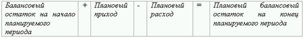 Плановый балансовый остаток на конец периода является расчетной величиной, балансовый остаток на начало периода берется как фактическая величина из баланса на начало бюджетного периода. Величины же планового прихода и расхода берутся из соответствующих сводных форм операционного, инвестиционного и финансового бюджетов (таблица 3.20).