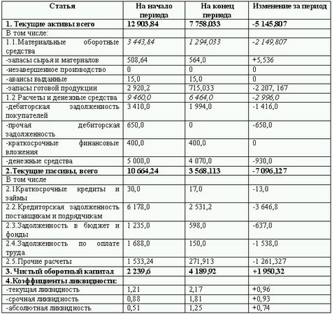 Рассчитав коэффициенты ликвидности на базе отчета об изменении финансового состояния, необходимо обратить внимание на то, что в начале бюджетного периода наличие оборотных средств предприятия характеризуется достаточным (в пределах нормы) уровнем, но по истечении года все коэффициенты увеличились и превысили максимальные значения, следовательно, можно говорить о неэффективном и нерациональном использовании оборотных средств.
