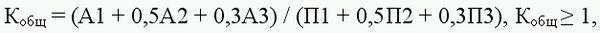 5. Общий коэффициент ликвидности баланса применяется для комплексной оценки ликвидности баланса в целом. С помощью него осуществляется оценка изменения финансовой ситуации компании с точки зрения ликвидности, позволяет сравнивать балансы различных отчетных периодов, а также балансы различных предприятий. Рассчитывается как отношение всех ликвидных средств компании к сумме всех платежных обязательств, при условии, что различные группы ликвидных средств и платежных обязательств входят в указанные суммы: