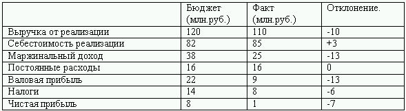 Изучаются отклонения затрат, выручки и финансовых результатов, движения товарно-материальных и финансовых ресурсов предприятия и источников их финансирования на основе сравнения плановых и фактических "выходных" форм сводного бюджета.