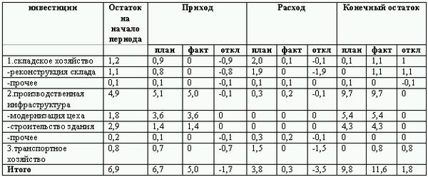 Таблица 3.24. Отчет об инвестициях (млн. руб.)