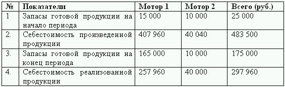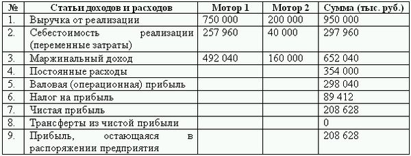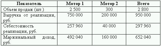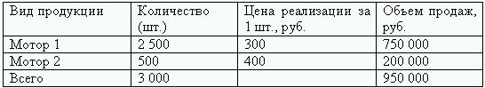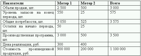 Запланированные продажи мотора 1 – 2500шт. по 300 руб./шт., мотора 2 – 500шт. по 400 руб./шт.