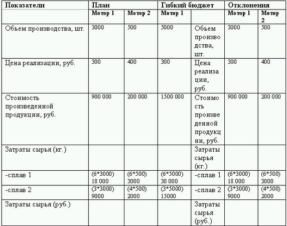 2) подготовить гибкий бюджет затрат на производство 5000 двигателей 1 и 1000 двигателей 2.