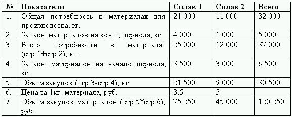 Планируемые запасы материалов на конец периода: для сплава № 1 – 4000 кг., для сплава № 2 – 1000 кг.