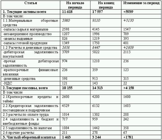 Отчет об изменении финансового состояния (тыс. руб.)