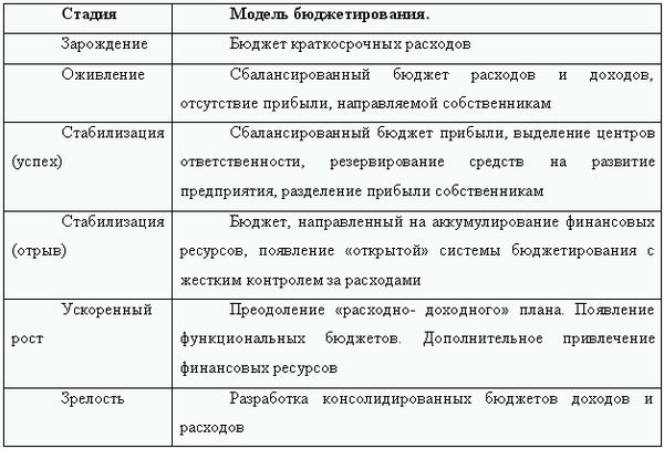 Модель построения бюджета на этом этапе должна быть направлена на соизмерение личных целей собственника и целей фирмы. При этом основатель фирмы должен быть готов к возможным собственным финансовым потерям во имя интересов фирмы.