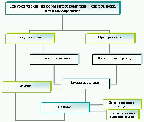 Обобщая вышеизложенное можно представить в комплексе систему планирования и бюджетирования на предприятии в виде схемы (схема 1.4). Полноценное бюджетное планирование на предприятии невозможно без учета цикла деловой активности, отраслевого цикла, цикла развития предприятия и жизненного цикла продукта. Анализ различных моделей роста и стабилизации предприятия показал, что на каждом этапе развития фирмы должна формироваться своя финансовая политика и данные, представляемые управленческим учетом, необходимо формировать, принимая во внимание основополагающую модель развития.